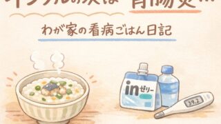 インフルエンザから回復したと思ったら、次は胃腸炎…。39.2度の発熱、吐き気、下痢の症状の中でわが家が頼ったポカリとウイダーinゼリー。さばの水煮缶で作った看病おかゆレシピも紹介します。