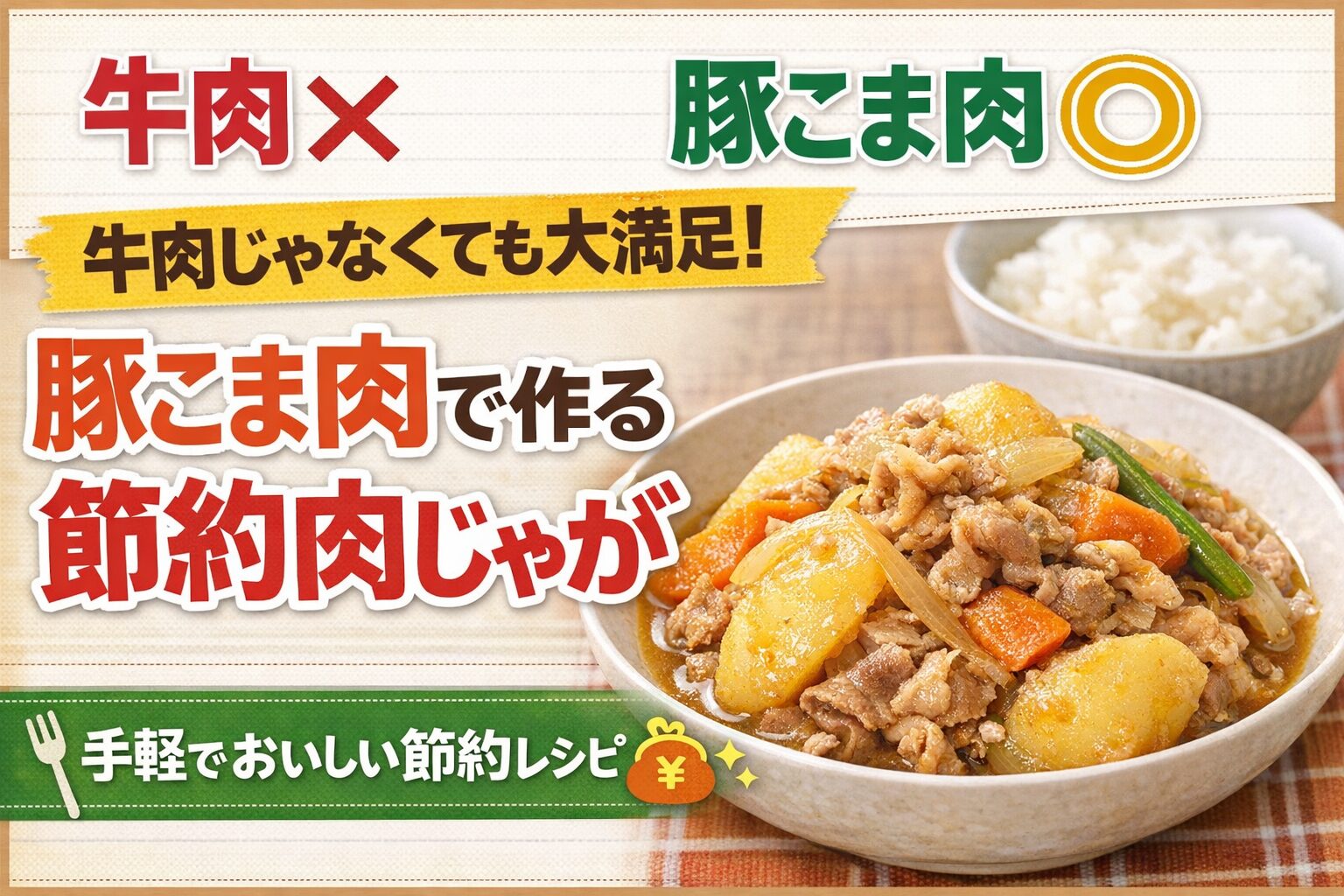 - 牛肉を豚こまに替えるだけで、1回の食事で数百円節約